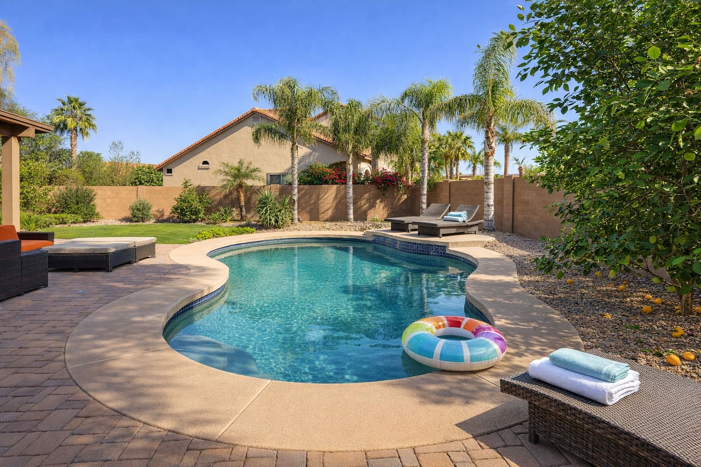 Escape to your private Scottsdale resort! This spacious 5-bed, 3-bath home with a detached casita is perfect for groups of up to 12. Enjoy a resort-style backyard with a sparkling pool, covered patio, and BBQ. Ideal for golf trips and family getaways, you're just minutes from TPC Scottsdale, Kierland Commons, and hiking trails. Your ultimate group retreat awaits!